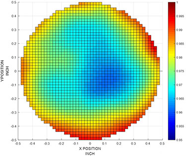 輻照不均勻度[1.9%] 在直徑2.54厘米的圓形輻照面積上。