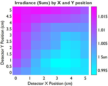 輻照不均勻度[1.3%] 在邊長(zhǎng)5厘米的正方形輻照面積上。