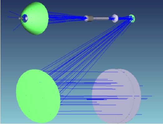 在**初的概念設(shè)計(jì)階段,制作了幾種不同的光線跟蹤模型來(lái)評(píng)估**有效的光學(xué)設(shè)計(jì)。找到光學(xué)元件的正確幾何位置還需要對(duì)光學(xué)設(shè)計(jì)進(jìn)行幾處改動(dòng)。進(jìn)行了多次射線追蹤模擬,以評(píng)估準(zhǔn)直度和輻照度分布。