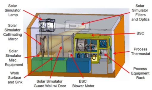 科學(xué)家聯(lián)系了我們,需要開(kāi)發(fā)定制的太陽(yáng)能模擬器,以實(shí)現(xiàn)政府的高度優(yōu)先研究計(jì)劃。他們對(duì)研究高層大氣中的空氣污染效應(yīng)和光化學(xué)具有獨(dú)特而特殊的光譜要求??蛻舻臉悠肥沂且粋€(gè)裝有懸浮氣溶膠的旋轉(zhuǎn)圓柱鼓,需要均勻和準(zhǔn)直的照明。但是,狹窄的實(shí)驗(yàn)室空間以及連接到樣品桶的其他設(shè)備的存在對(duì)我們提出的解決方案施加了多個(gè)限制。