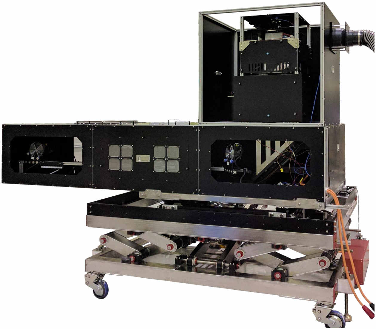 我們的客戶需要整個太陽能模擬器在5個軸(X,Y和Z)以及2個旋轉(zhuǎn)軸上進行自動運動。此外,整個系統(tǒng)需要在無塵室內(nèi)運行,因此必須隔離太陽能模擬器的空氣冷卻系統(tǒng)。